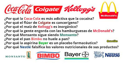 Nos duele reconocer que hasta la todopoderosa Iglesia Católica, que es una transnacional religiosa con gran reputación en el planeta Tierra, y que tiene un alto poder de convencimiento entre sus millones de feligreses, pues tampoco denuncia que sus fanáticos se enferman con Pepsi-Cola, Cargill, Red-Bull, Maggi, McCormick, Marlboro, Lucky Strike, Frito-Lay, Kraft, Budweiser, y demás marcas dedicadas a corromper los siete potajes.